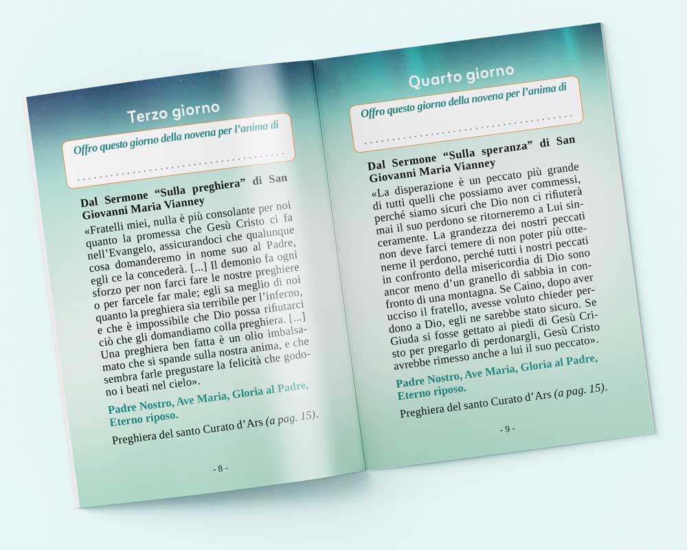 La pubblicazione nasce nell’anno in cui ricorre il centenario della canonizzazione di San Giovanni Maria Vianney. In un tempo in cui non si parla più di salvezza dell’anima e di vita eterna, le parole del Santo Curato d’Ars donano luce e consolazione soprattutto per i nostri cari che non ci sono più.